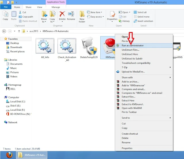 اضغط بالزر الايمن للماوس على KMSnano واختر run as administrator